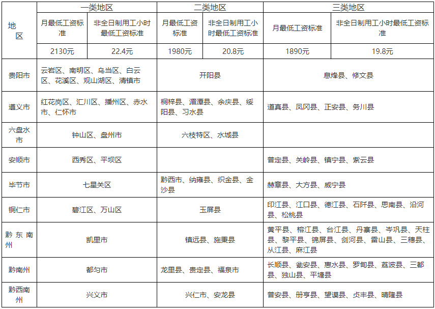 附件:贵州省最低工资标准区域划分表(执行时间:2025年2月1日)