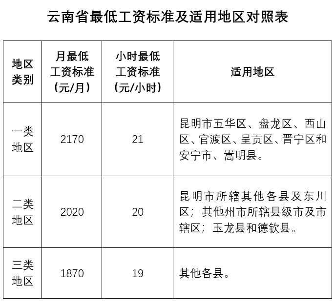 (二)二类地区月最低工资标准调整为2020元,小时最低工资标准调整为20元。